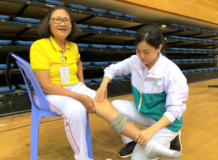 Nhân viên kịp thời chăm sóc y tế cho vận động viên