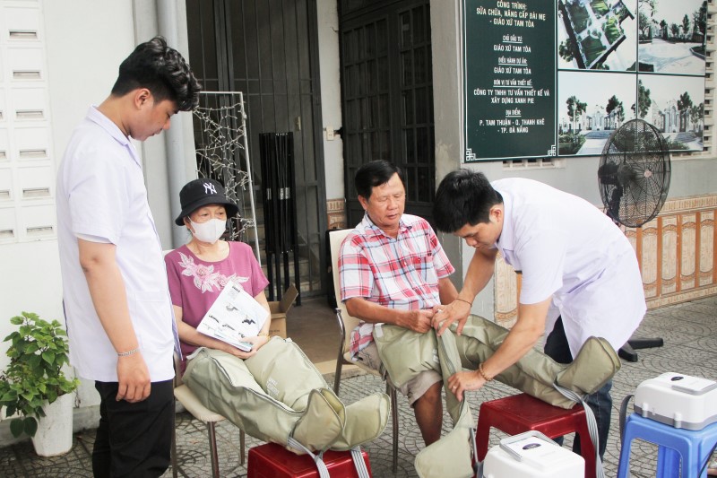Trong chường trình, bà con được khám, tầm soát bệnh lý về tim mạch, khám tư vấn bệnh lý về xương khớp, sử dụng máy móc để phục hồi chức năng, tầm soát bệnh tai mũi họng…