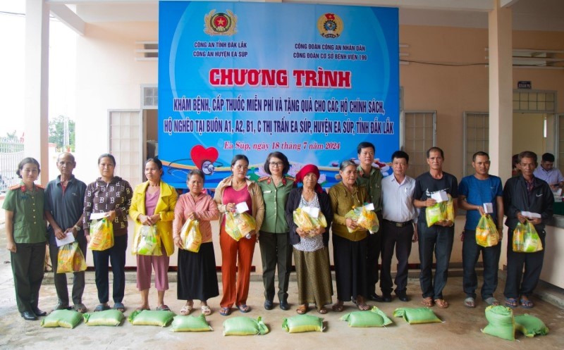 Theo đó, trong hai ngày (18 -19/7), Công đoàn cơ sở Bệnh viện 199 Bộ công an phối hợp với Công đoàn Công an tỉnh Đăk Lắk, Công an thị trấn Ea Súp và thị xã Buôn Hồ tổ chức khám bệnh, tặng quà cho đối tượng có hoàn cảnh đặc biệt khó khăn.