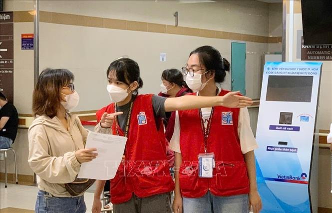 Nhân viên công tác xã hội Bệnh viện Đại học Y dược TP Hồ Chí Minh hướng dẫn người bệnh. Ảnh: TTXVN phát