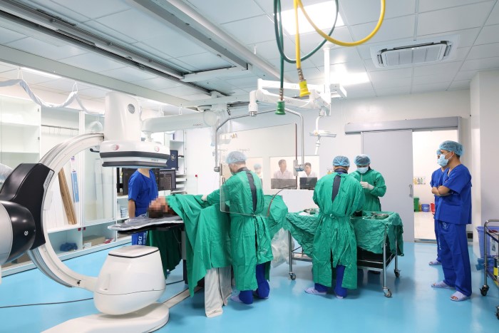 Ê-kip bác sĩ Đơn vị can thiệp tim mạch chuẩn bị can thiệp cho một bệnh nhân
