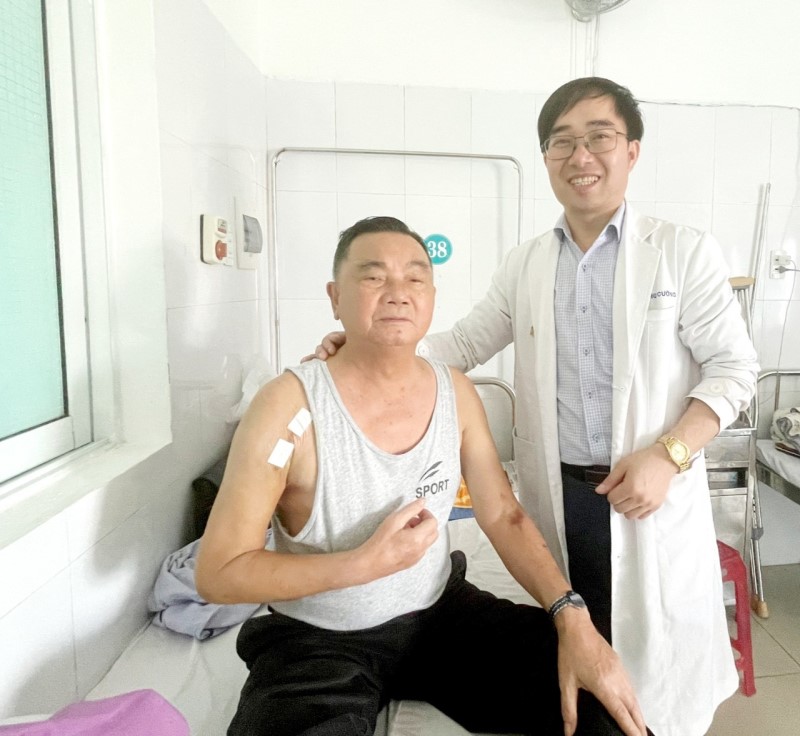 Các bác sĩ khoa Chấn thương chỉnh hình – Bỏng – Y học thể thao vừa thực hiện kỹ thuật thay khớp vai toàn phần đảo ngược và ca phẫu thuật thành công đã mang lại niềm tin lớn cho người nhà bệnh nhân.