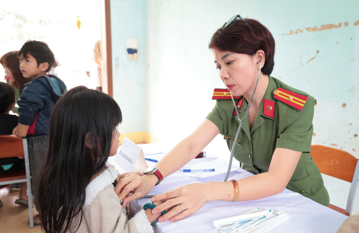Các y bác sĩ  bệnh viện 199 khám bệnh, phát thuốc miễn phí cho học sinh