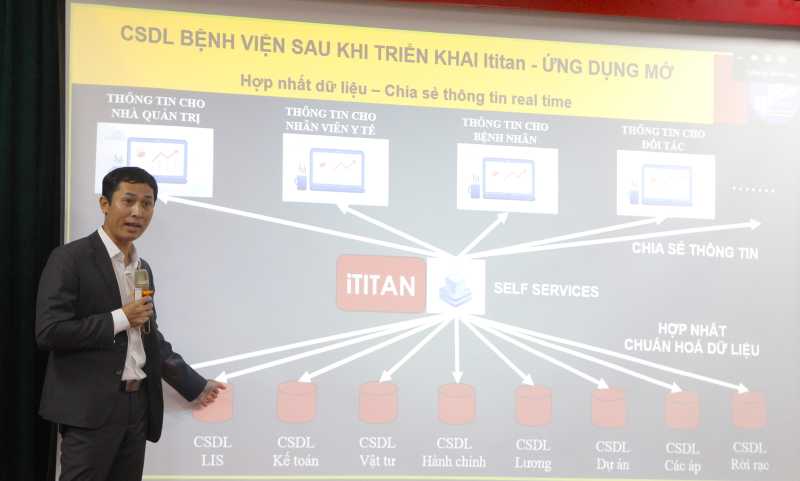 Còn TS Đặng Văn Cường lại mang đến Hội trường một góc nhìn khác với “Câu chuyện từ mã nguồn mở đến ứng dụng mở của nền tảng iTitan trong khoa học dữ liệu và ai y tế”. Theo đó, một số giải pháp được đưa ra ở đây là mô hình Data WareHouse; Data Lake, Data Lakehouse (từ năm 2020), đặc biệt mô hình Data Lakehouse - một cách tiếp cận “mới xuất hiện trong thời gian gần đây” nhằm tạo ra DataLake có sự kết hợp xuyên suốt về lưu trữ, phân tích và tạo ra dữ liệu “nghiệp vụ” từ mọi dữ liệu.